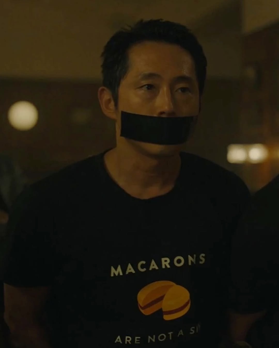 때로는 이 작은 활자들이 극의 상황과 충돌하며 완벽한 시각적 아이러니를 완성하기도 한다. <미키 17> 속 긴박한 상황과 대비되는 “MACARONS ARE NOT A SIN”이라는 부조리한 문구, 혹은 <스파이더맨: 홈커밍>에서 세상을 구한 소년이 입고 있는 흔한 관광지 티셔츠(“I SURVIVED MY TRIP TO NYC”)의 위트가 그렇다. 스크린 속의 잘 고른 슬로건 티셔츠 한 장은, 어떤 화려한 대사보다도 선명하게 뇌리에 꽂히는 궁극의 펀치라인이다.